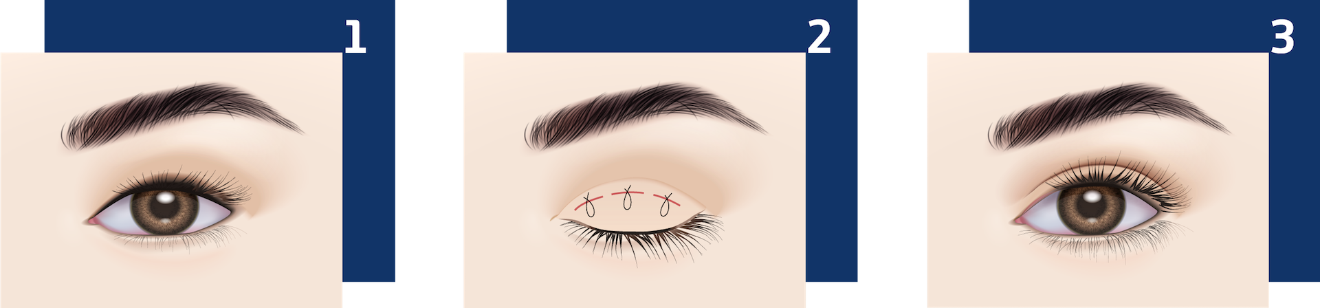 - 눈꺼풀 피부와 눈을 뜰때 쓰이는 근육 사이에 유착을 만들어 쌍꺼풀 라인을 완성합니다.