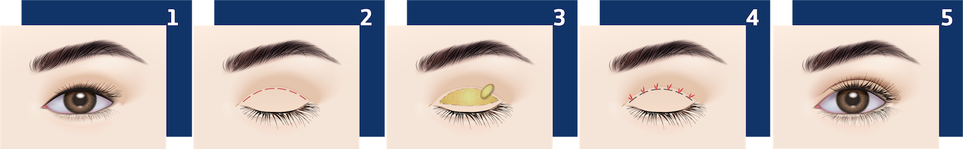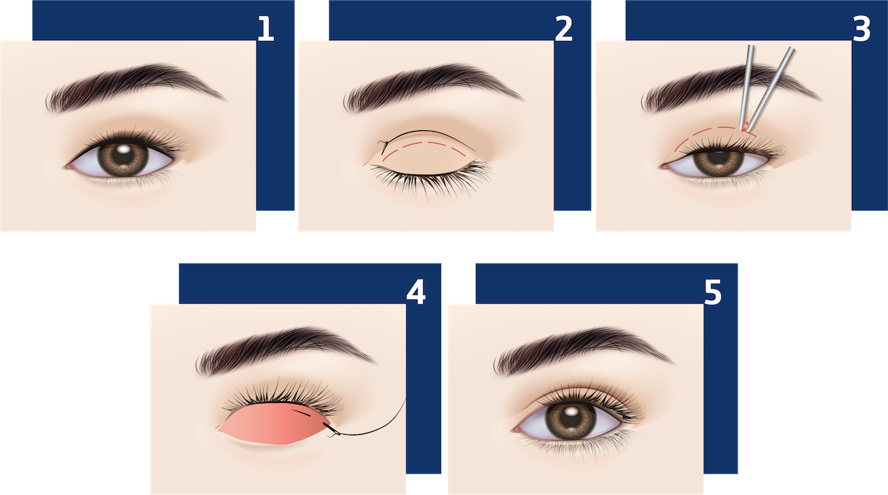 - 눈꺼풀이 처진정도에 따라 불필요한 피부 및 근육,지방을 제거합니다.