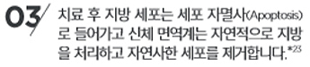 슬림지방분해주사는 인체에 무해하고 스테로이드가 첨가되지 않아 안전하게 특정 부위에 주입하여 지방의 알갱이들을 융해시키고 파괴시키는 시술입니다. 지방세포 수를 줄이고 국소 순환을 개선시키는 시술로 요요현상이 거의 없는 비만치료입니다.